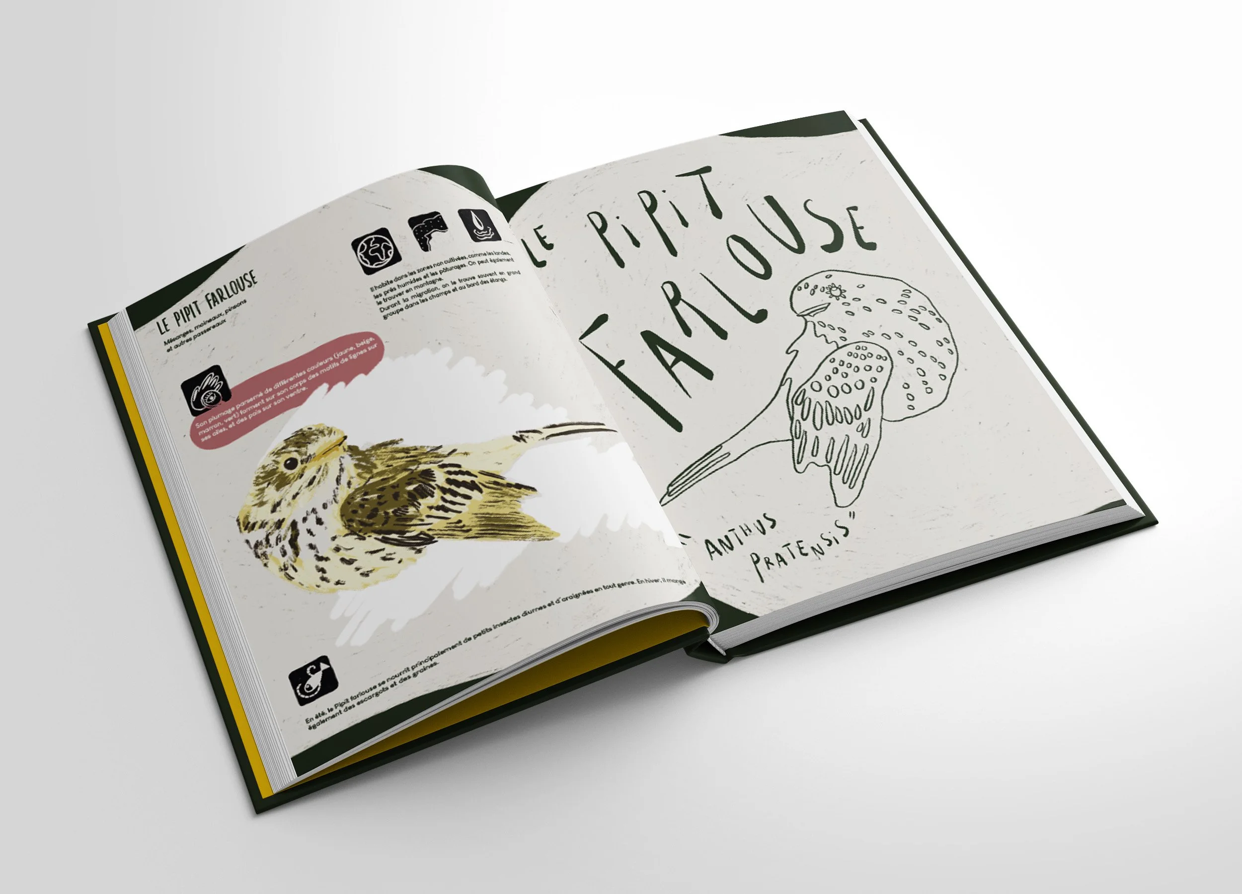 J’ai réalisé un projet 360° qui comprend une charte graphique, un parcours de signalétique qui se fond dans la nature (panneaux en trompe l’oeil menhir), une édition sur les espèces menacées, un livret d’activité pour les enfants, une cartographie illustrée, et bien d’autres supports.